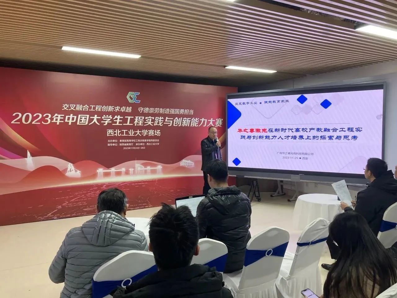 廣州華之尊光電科技有限公司作為2023年中國大學(xué)生工程實踐與創(chuàng)新能力大賽激光加工設(shè)備服務(wù)商及激光技術(shù)支持單位參加了此次大賽。在大賽期間,廣州華之尊光電科技有限公司總經(jīng)理秦斌在“高校工程實踐產(chǎn)教融合新人才培養(yǎng)”研討會中以《
