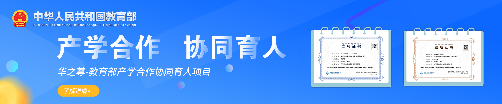 喜訊 | 教育部高等教育司公布2024年第一批產(chǎn)學(xué)合作協(xié)同育人項目立項名單!華之尊激光申報項目全部獲批!